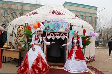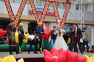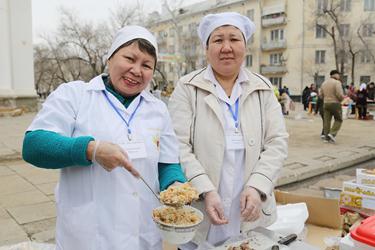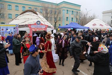 По случаю праздника на площади были установлены юрты от Байконурского филиала АО "Народный Банк Казахстана", колледжа им. академика Джиенкулова, фирмы «Бутя-Байконур» и казахстанских школ города. Гости праздника могли отведать яства казахской кухни - плов, шубат, баурсаки, и ритуальное блюдо наурыз коже, олицетворяющее собой достаток и процветание.