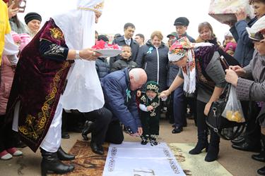 Семья Александра и Лауры Ковтонюк отмечала двойной праздник. В этот день их сын Тимур должен был сделать первый шаг после обряда «Тусау кесу» – обрезание пут у ребенка. Право дать юному байконурцу «путевку в жизнь» было предоставлено Главе города Анатолию Петренко, который перерезал путы, вручил подарок Тимуру и пожелал ему вырасти достойным гражданином своей страны.