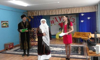 В актовом зале клуба «Юность» собрались воспитанники детских подростковых клубов города, их встретили ведущие в национальных костюмах (педагоги – организаторы Ж.Агадил и М.Родригес) и аже – бабушка (педагог – организатор А.Абжаппарова), которая рассказала об особенностях праздника «Наурыз».