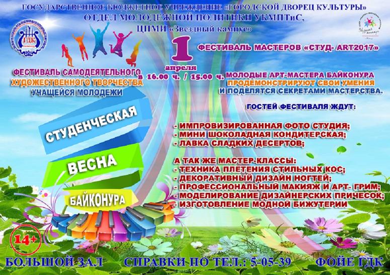 29.03.2017 - 01.04.2017  Открытый фестиваль художественного самодеятельного творчества учащейся молодежи "Студенческая весна Байконура"