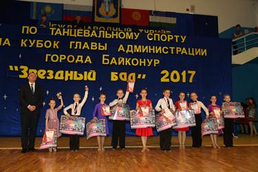 Одним из ярких весенних событий в спортивной жизни города Байконур стал Международный турнир по танцевальному спорту «Звездный бал -2017» на кубок Главы администрации города Байконур, который проходил 1 и 2 апреля в спорткомплексе «Маяк». В этом году турнир был посвящен 60-летию бального танца в России.