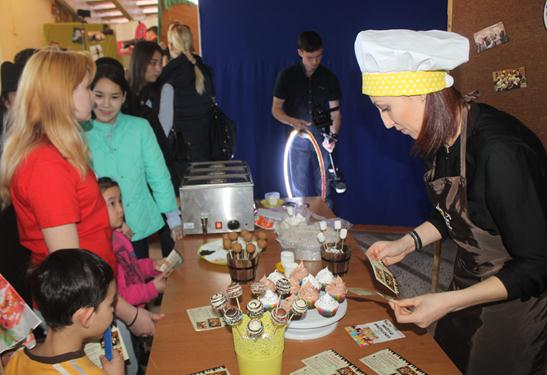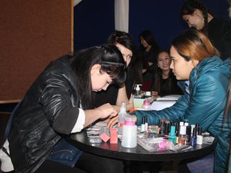 Фестивальная программа не ограничилась только творческими номерами и выступлением на сцене. Уже на входе в Городской Дворец культуры всех гостей ждал необычный сюрприз: прямо в фойе развернулась ярмарка молодых арт-мастеров, где каждый участник мог продемонстрировать свои творческие навыки и поделиться секретами мастерства. На импровизированных площадках развернулись фотостудия (Азамат Алькешов) и мобильная шоколадная кондитерская (Наталья Лесникова). Были даны мастер-классы по технике плетения стильных кос (Светлана Гирик), декоративному дизайну ногтей (Золотова Элина, Мазянова Наталья, Бацунова Айдана), профессиональному макияжу и моделированию дизайнерских причесок (Белоусова Екатерина, Канатбай Фарида). На время фестиваля фойе превратилось в своеобразный салон красоты, где гости с неподдельным интересом наблюдали за работой арт-мастеров, а кто-то и сам включался в процесс, став моделью.