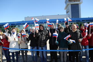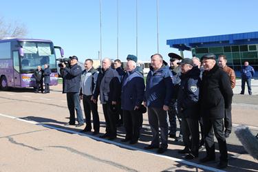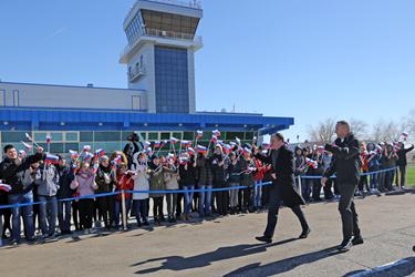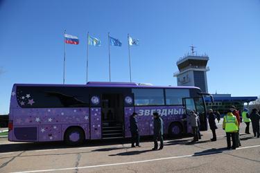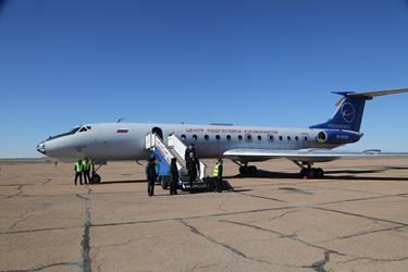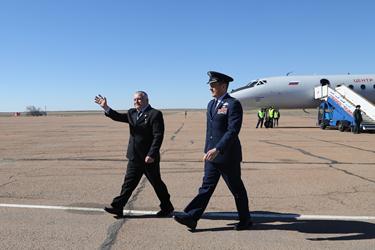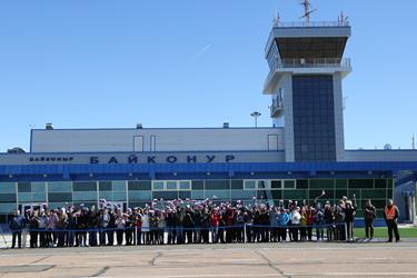 В аэропорту «Крайний» членов основного экипажа - российского космонавта Фёдора Юрчихина и астронавта НАСА Джека Фишера, дублирующий экипаж, в составе которого российский космонавт Сергей Рязанский и астронавт НАСА Рэндолф Брезник, приветствовали Глава администрации города Байконур, руководители и представители филиала Госкорпорации по космической деятельности Роскосмос, РКК «Энергия», филиала ФГУП ЦЭНКИ - Космический центр «Южный», УМВД России на комплексе «Байконур», а также учащиеся Международной космической школы.