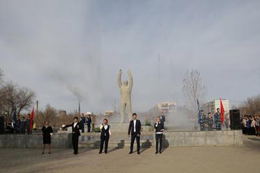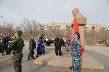 С поздравлениями выступили также и.о. директора филиала Госкорпорации по космической деятельности «Роскосмос» на космодроме Байконур Роман Бобков и руководитель Управления космодрома «Байконур» Казкосмоса Амангельды Бекишев, который передал байконурцам слова благодарности от Министра оборонной и аэрокосмической промышленности Республики Казахстан Бейбута Атамкулова.