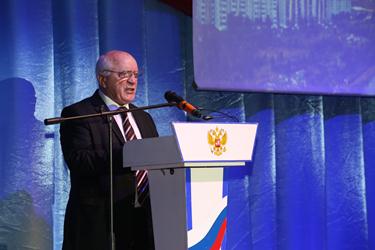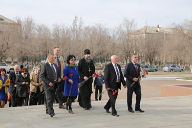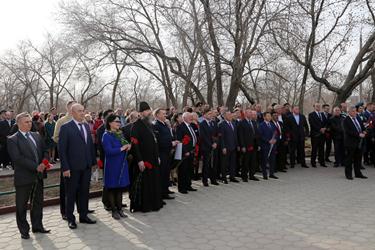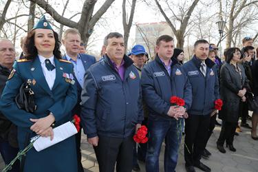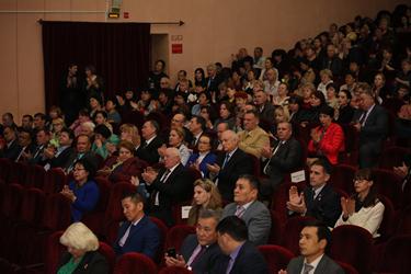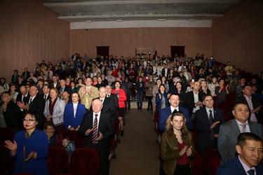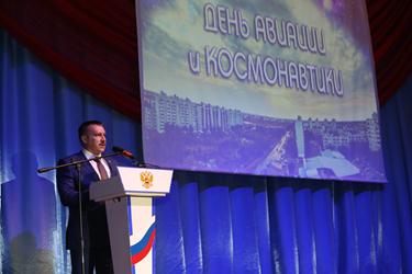 Официальная часть праздничного мероприятия началась с государственных гимнов Российской Федерации и Республики Казахстан. Открывая торжественное собрание, Глава администрации города Байконур Анатолий Петренко отметил: «Мы помним и гордимся отвагой, мужеством и целеустремленностью покорителей космоса. За прошедшие десятилетия трудом нескольких поколений специалистов была создана мощная производственно-технологическая база, которая и сегодня служит укреплению отечественного промышленного потенциала, надежному обеспечению обороноспособности и национальной безопасности России». Глава города выразил благодарность работникам ракетно-космической отрасли и городских предприятий за надежное обеспечение подготовки и запусков космических аппаратов по российским и международным космическим проектам. «Всем горожанам я выражаю признательность за беззаветную преданность Байконуру!», - подчеркнул в своей речи А.Петренко.