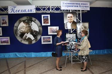 Днем в Городском Дворце культуры состоялись торжественное собрание и концертная программа, посвященные Дню космонавтики. В фойе Дворца культуры была развернута тематическая выставка, на которой были представлены уникальные фотографии из семейных архивов ученых и космонавтов, книги об их жизненном пути и триумфах.