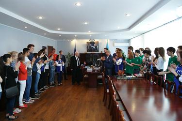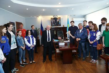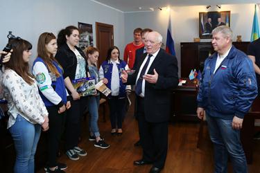 17 апреля в городской администрации состоялась встреча школьников и студентов из Ханты-Мансийского автономного округа с Главой администрации города Байконур Анатолием Петренко. Ребят сопровождал директор Международной космической школы Дмитрий Шаталов, который рассказал, что молодые люди являются студентами Сургутского государственного университета и воспитанниками Центра дополнительного образования «Кванториум» из города Нефтеюганска. По инициативе Губернатора ХМАО Натальи Комаровой за отличную учебу и победу в конкурсах и олимпиадах космической направленности ребятам посчастливилось побывать с экскурсионной программой на Байконуре.