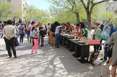 Закрытие Весенней Недели Добра состоялось 29 апреля на Арбате около кафе «Звездное небо». В этот день организаторы акции решили не просто подвести итоги и торжественно наградить самых активных участников недели добровольцев, но и провести в поддержку детей фонда «БлагоДари» благотворительный концерт «Протяни руку помощи», в котором приняли участие представители студенческого сообщества Байконура – лауреаты фестиваля самодеятельного творчества «Студенческая весна», учащиеся средней школы №10 и самые юные участники концертной программы – воспитанники танцевального коллектива «Аллегро». Также, свой вклад в общее дело, внесли рукодельницы из студии «Мечта» и «Мастерица» Городского Дворца культуры и родители особенных детей фонда «БлагоДари», организовав выставку-продажу изделий декоративно-прикладного творчества, а также рисунков и поделок, сделанных руками ребятишек. Пока шли концерт и распродажа сувениров, участники социального проекта «Больничная клоунада» организовали для маленьких зрителей небольшой праздник с разноцветным парашютом и веселыми играми, а сотрудники городской библиотеки дарили всем любителям чтения книги.