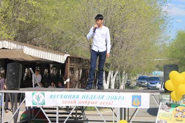 Открытие Весенней Недели Добра состоялось 22 апреля в день проведения общегородского субботника. В парке культуры и отдыха был организован экологический субботник, в котором приняли участие 145 учащихся профессиональных образовательных организаций города. Ребята не только провели уборку на отведенной им территории парка, но и очистили от бытового мусора берег реки Сырдарьи. В этот же день, 25 студентов совместно с инспекторами ОУУиПДН УМВД России на комплексе «Байконур» провели акцию «Стоп продавец. Соблюдай закон», распространив в магазинах города плакаты с информацией о запрете продажи алкоголя и табака несовершеннолетним. А студенты филиала «Восход» МАИ приняли участие в акции «Молодежь за чистый город», расклеив на информационных стендах города мотивационные листовки с обращением к жителям соблюдать чистоту и порядок.