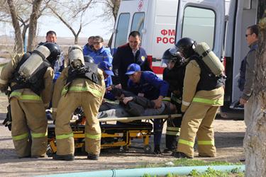 В соответствии с решением Оперативного штаба в городе Байконур с 21 по 26 апреля на базе Государственного бюджетного учреждения «Бассейн «Орион» были проведены антитеррористические учения «Метель – Байконур 2017», в ходе которых был отработан комплекс мероприятий по пресечению и устранению последствий террористического акта на объекте массового пребывания людей.