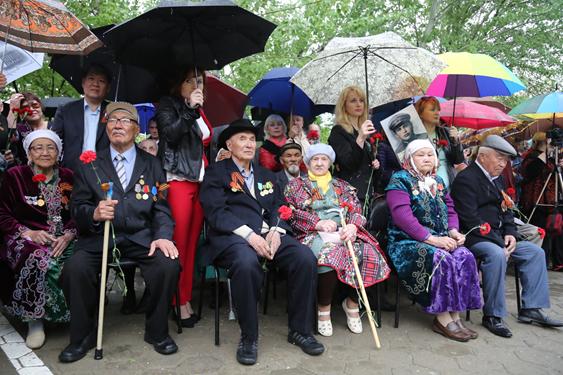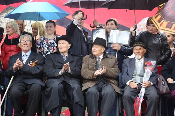 С праздником горожан также поздравили и.о. директора филиала Госкорпорации по космической деятельности «Роскосмос» на космодроме Байконур Роман Бобков и настоятель православного храма святого Георгия Победоносца отец Сергий. Они выразили огромную благодарность старшему поколению за добытую в боях и на трудовой ниве Победу и пожелали байконурцам мира и добра.