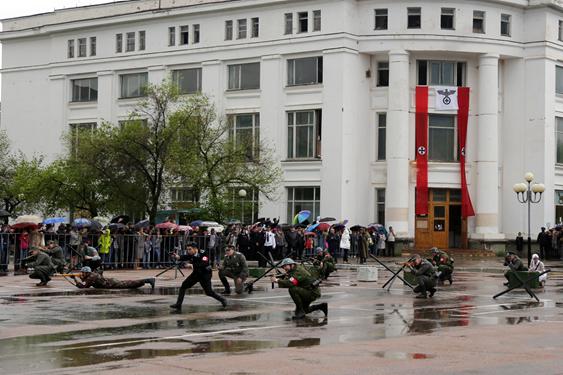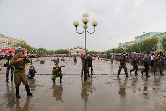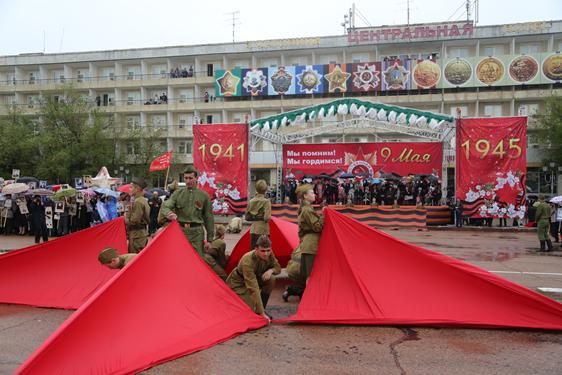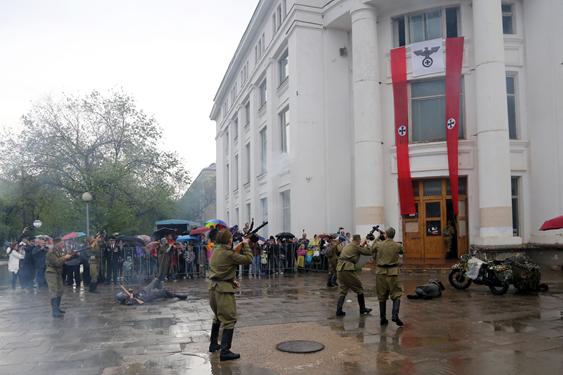 Кульминацией праздника стала масштабная театрализованная постановка «Штурм Рейхстага» и реконструкция одного из эпизодов парада Победы 1945 года, которые подготовили члены региональных отделений общественных организаций «Офицеры России» и «Боевое братство». Постановка сопровождалась комментариями по историческим сводкам Совинформбюро.