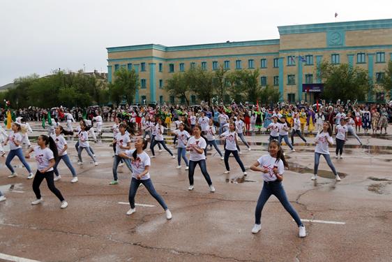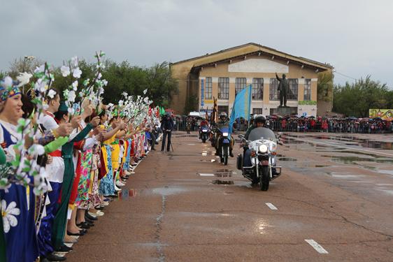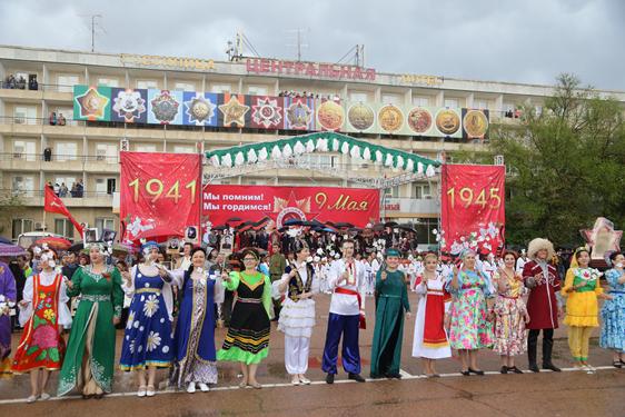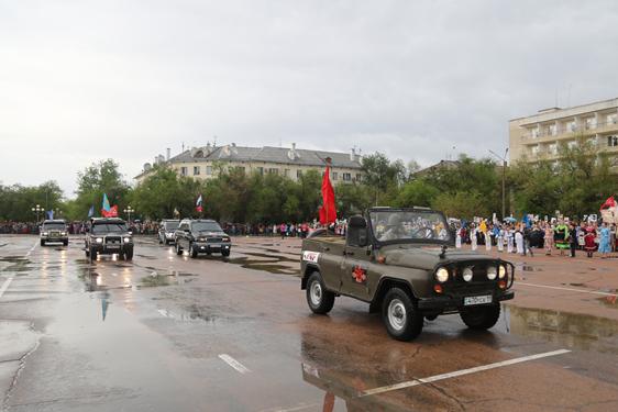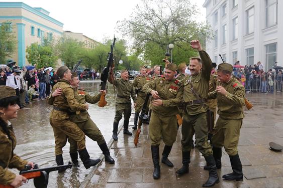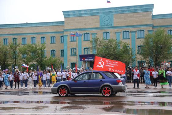 Дополнила историческую постановку красочная хореографическая композиция, символизирующая многонациональность народов СССР, и преемственность поколений. Украшенные флагами и гвардейскими лентами, проехали по площади мото – и автоколонны, организаторами которых выступили мотоклуб «Байконур» и авто-сообщества «OFF-road Baikonur» и «Drive2.ru Байконур».