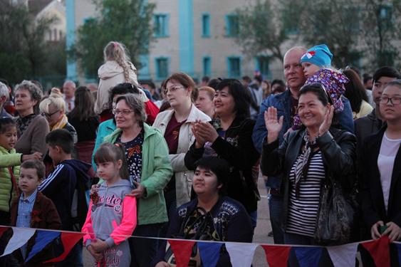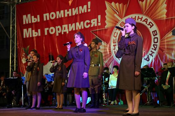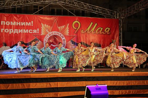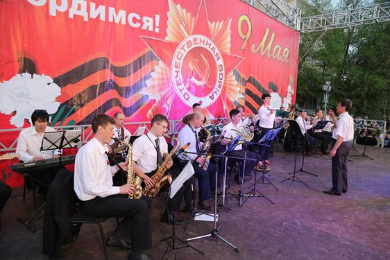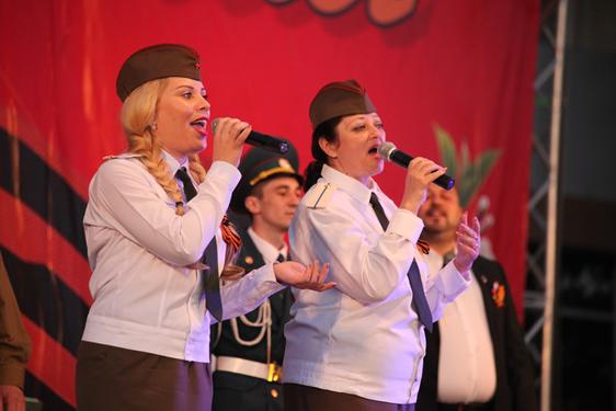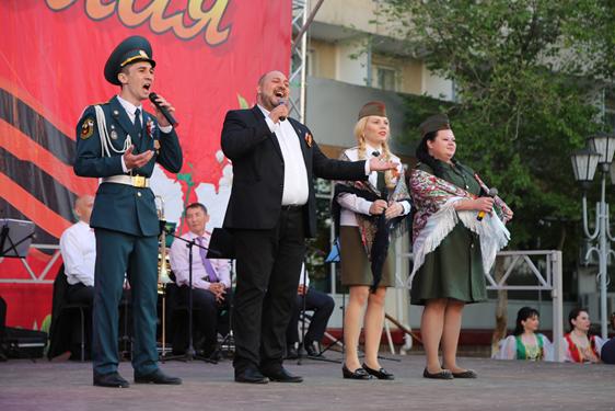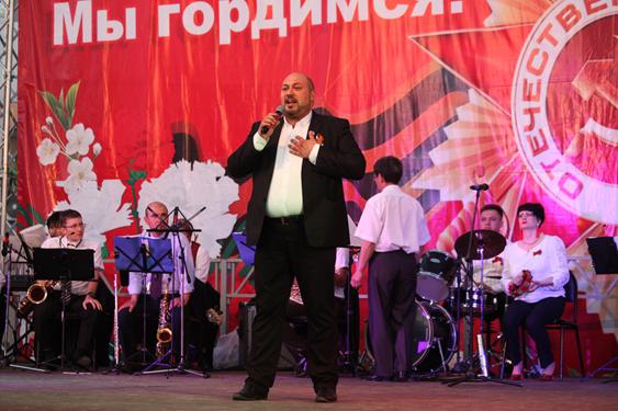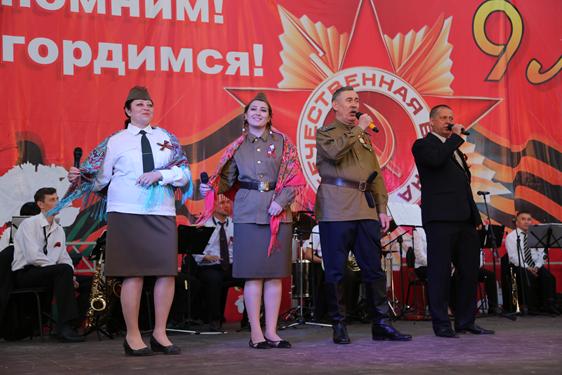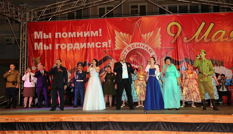 Вечером праздничные мероприятия, посвященные Дню Победы, продолжились. На центральной площади состоялась концертная программа «Нам не забыть победный май!» с участием эстрадно-духового оркестра, солистов и творческих коллективов ГДК.