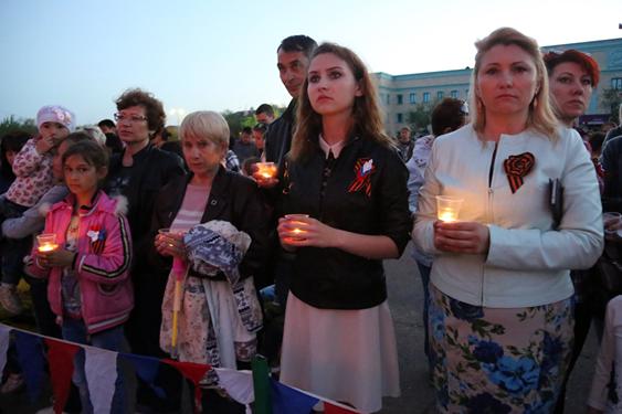 Составной частью праздника стала акция «Свеча памяти». Волонтеры раздали горожанам свечи, которые были зажжены в минуту молчания в дань памяти всем, кто погиб за Победу, в знак благодарности за нашу мирную и счастливую жизнь.
