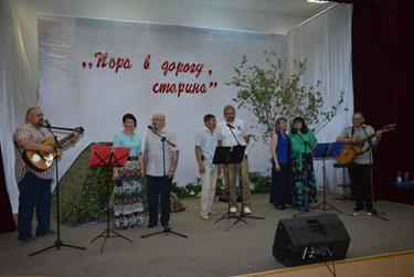 Антураж на сцене – палатка, деревце, котелок на огне, лирические истории Окуджавы из динамиков – соответствовали теме. Как это обычно бывает, члены КСП «Звёздный» помогли товарищу взять ноту и исполнили в дебюте концерта две хоровые песни «Давай, командуй, капитан»! и «Здесь остановки нет».