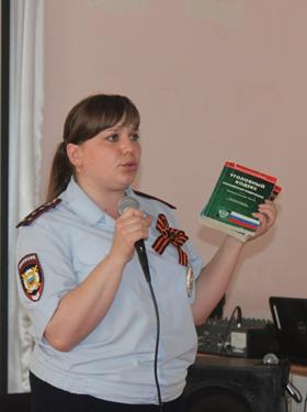 Инспекторы по делам несовершеннолетних выступили с информацией о юридической ответственности за преступления, связанные с незаконным оборотом наркотиков. Разъяснили студентам, что за нарушение правил оборота наркотических средств (незаконное употребление, производство, приобретение, хранение, распространение) законом предусмотрены административная и уголовная ответственности.