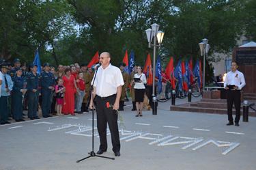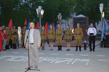 Вечером 21 июня на митинге выступили заместитель Главы городской администрации Николай Адасёв, председатель городского Совета ветеранов Виктор Новиков, представители байконурских региональных отделений Всероссийских общественных организаций ветеранов "Боевое братство" и «Офицеры России» Рафик Курбеев и Петр Майданов. Рефреном во всех выступлениях прозвучали слова скорби о погибших в боях, замученных в фашистской неволе, умерших от голода, лишений и непосильной работы.