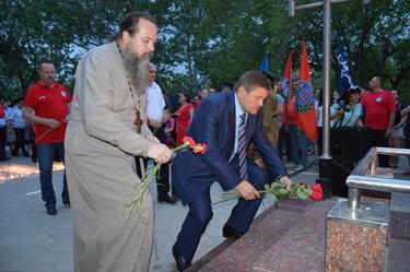 Настоятель православного храма святого Георгия Победоносца отец Сергий отслужи панихиду по погибшим.