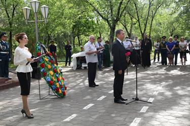 22 июня митинг в сквере Победы начался с гимнов России и Казахстана. У памятника Победе был установлен венок с надписью «Ничто не забыто, никто не забыт».