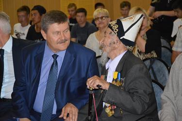 Почетный гость мероприятия, ветеран Великой Отечественной войны, участник Сталинградской битвы и битвы на Курской дуге, почетный гражданин города Байконур Калмурза Жарманов пожелал новобранцам доброго здоровья, славной службы и скорейшего возвращения домой.