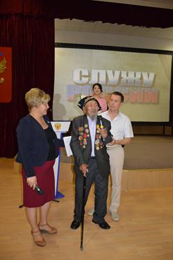 Торжественную обстановку на мероприятии создавали солисты Городского Дворца культуры, в исполнении которых прозвучали патриотические песни «Давным-давно была война» и русский марш «Мы – армия страны!».