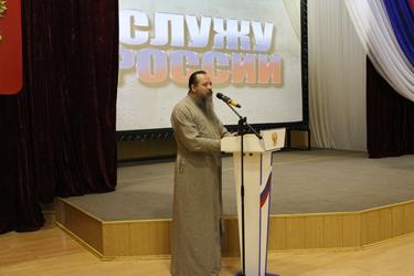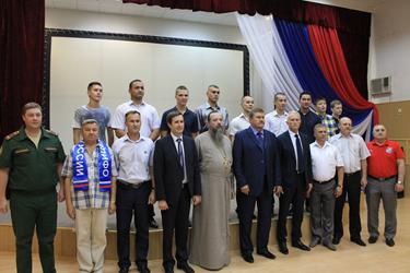 Настоятель Православного Храма святого Георгия Победоносца отец Сергий благословил ребят на ратное служение Отечеству.