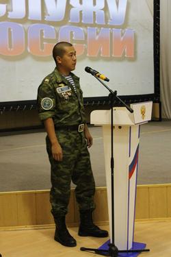 С напутственной речью перед новобранцами выступили также военный прокурор города Байконур Наиль Уразгельдиев, офицеры, проходящие военную службу в Космическом центре «Южный», представители региональных отделений общественных организаций «Офицеры России» и «Боевое братство», а также ребята, уже отслужившие в армии.