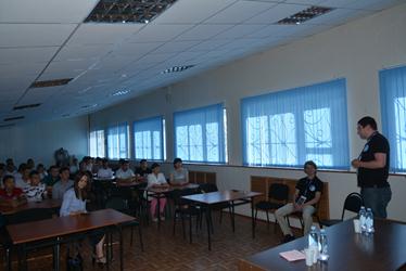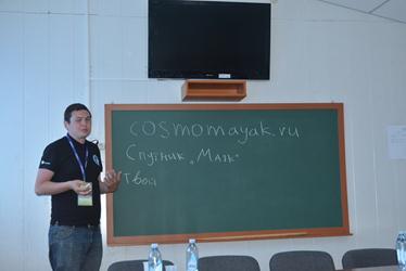14 июля, в день запуска космического аппарата «Канопус-В-ИК» и кластера малых космических аппаратов, в конференц-зале стадиона «Десятилетие» была организована встреча создателей спутника «Маяк» с молодежью Байконура.