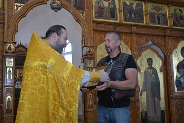 16 июля Байкеры побывали на воскресной службе в храме святого великомученика Георгия Победоносца, по окончании которой Виталий Падалкин обратился с речью к настоятелю храма протоиерею отцу Сергию и прихожанам: «Мы проехали восемь с половиной тысяч километров в мотопробеге «Космос наш – 60», и господь дал нам лёгкую дорогу, мы везём с собой икону святого Иоанна Лествичника для передачи в дар вашему храму». Отец Сергий принял икону и сказал: «Спаси вас господь! Эта икона как символ благословения будет храниться в нашем храме, и прихожане будут к ней подходить и молиться».
