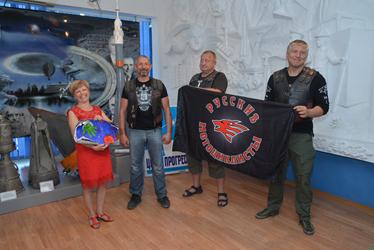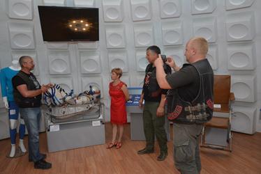 В понедельник, 17 июля, участники мотопробега посетили городской музей истории космодрома Байконур в ГДК. Виталий Падалкин передал заместителю директора музея Галине Мильковой рисунки детей. Он отметил, что рисунки подготовили ученики школ №17 и №18 Красногорска, где есть музей космонавтики. Галина Милькова заверила, что рисунки займут достойное место в музее в экспозиции, посвящённой 60-летию запуска первого ИСЗ. Она отметила, что осенью в Байконуре тоже пройдет конкурс рисунков и лучшие работы будут отправлены в музей Красногорска. Байкеры осмотрели музей и оставили записи с благодарностью в книге почётных гостей.