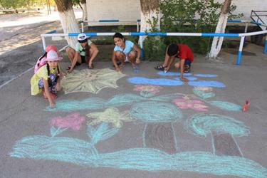 По условиям конкурса ребята рисовали цветными мелками на асфальте композиции о лете и летних каникулах. Оценивало работы жюри в составе работников городской библиотеки им. Т. Шевченко А. Пазылбековой и Г. Жургабаевой, и заведующей отделом по социально-педагогической работе ЦРТДиЮ С. Тен. Жюри учитывало оригинальность идеи и композиции рисунков, качество и цветовое решение работ.