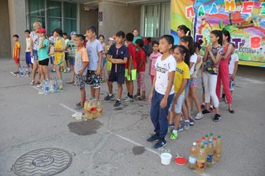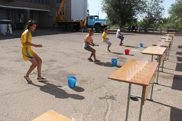 В жаркий пятничный день 7 июля во дворе Центра прошла детская развлекательная программа «Водная эстафета» для воспитанников детских подростковых клубов. Программа «Водной эстафеты» была насыщенной и веселой. Шуточные задания требовали серьезной подготовки от участников: нужно было проявить ловкость, смекалку, выдержку и командный дух. Ребята старались как можно лучше и быстрее выполнить самые разнообразные и сложные задания, чтобы завоевать победу для своей команды. А задания были такие: перенести стаканчик с водой на теннисной ракетке, пронести поднятые над головой ведерки с водой, сбить струей воды из импровизированных пулемётов стаканчики, бросить в стакан монетку. Все эстафеты ребята выполняли дружно, поддерживая друг друга добрыми словами, старшие помогали младшим справиться с заданиями.