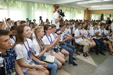Ольга Васильева с интересом осмотрела учебные аудитории и музей МКШ, пообщалась в неформальной обстановке с активистами российского движения школьников, которые приехали на Байконур из 40 регионов России для участия в детском космическом фестивале и проводов в космический полет Сергея Рязанского, являющегося председателем РДШ.