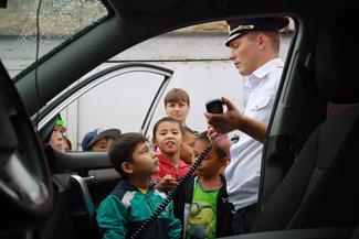 В ходе встречи инспекторы ознакомили ребят с историей ГИБДД, провели экскурсию по подразделению, показали служебный автотранспорт, научили пользоваться сигнально-громкоговорящей установкой патрульной машины и продемонстрировали спецсредства, которые используются стражами правопорядка. Кроме этого, у детей была возможность посидеть за рулем служебного автомобиля и лично осмотреть все приборы.