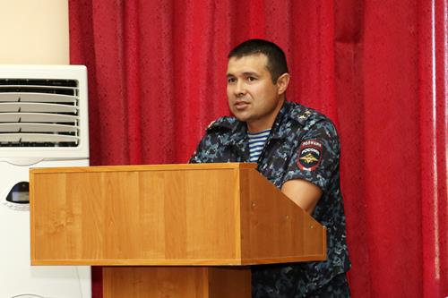 По вопросам охраны общественного порядка сотрудниками полиции и взаимодействия с персоналом образовательных учреждений города Байконур выступил заместитель начальника полиции УМВД России на комплексе «Байконур» Р.Канзафаров.