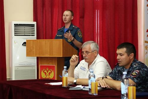 Оперативный уполномоченный уголовного розыска УМВД России на комплексе «Байконур» В.Кондратьев доложил о проводимых полицией мероприятиях в период подготовки ко Дню знаний в сфере обеспечения антитеррористической защищенности объектов вероятных террористических посягательств.
