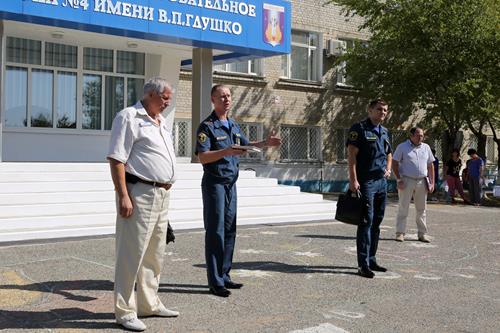 25 августа в Государственном бюджетном общеобразовательном учреждении средней школе № 4 им. В.П.Глушко прошло методическое занятие по теме «Действия руководящего состава, личного состава по обеспечению комплексной безопасности образовательных учреждений города Байконур. Основные мероприятия по обеспечению антитеррористической защищенности объектов вероятных террористических посягательств».