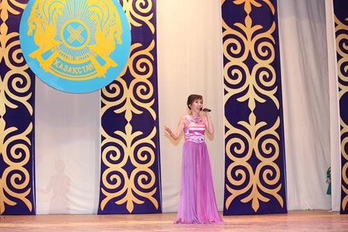 Тожественное мероприятие началось с патриотического номера «Казахстан» в исполнении солистов ГДК и хореографического коллектива «Блюз», который вызвал в зале бурю оваций.