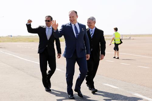 На церемонии присутствовали генеральный конструктор по пилотируемым космическим комплексам ОАО РКК «Энергия» Сергей Романов, глава администрации города Байконур Константин Бусыгин, и.о. директора филиала Госкорпорации по космической деятельности «Роскосмос» на космодроме Байконур Роман Бобков, заместитель председателя Аэрокосмического комитета Министерства оборонной и аэрокосмической промышленности РК Галымжан Данбаев, директор филиала ФГУП «ЦЭНКИ» – Космический центр «Южный» Евгений Раковский и другие. Представители руководства города и космодрома заверили космонавтов и астронавтов, что все городские структуры и предприятия Роскосмоса готовы к обеспечению предстоящего запуска. Они пожелали экипажу выполнения всех поставленных задач, удачного старта и благополучного возвращения на Землю.
