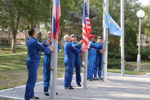 7 сентября в Испытательном учебно-тренировочном комплексе НИИ ЦПК им. Ю.А.Гагарина была проведена традиционная церемония поднятия флагов государств, участвующих в реализации программы полета экипажей 53/54-ой длительной экспедиции на МКС.