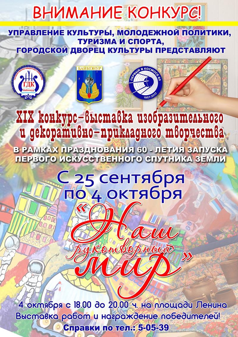 15.09.2017 - 04.10.2017  XIX конкурс-выставка изобразительного и декоративно-прикладного творчества «Наш рукотворный мир»