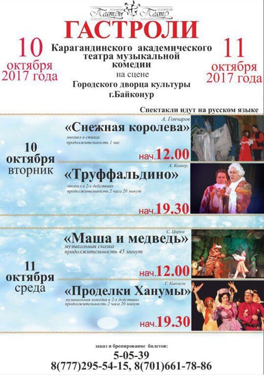 26.09.2017 - 11.10.2017  Гастроли Карагандинского театра музыкальной комедии
