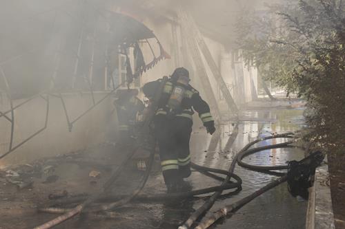 В 15:30 площадь пожара составляла 1 000 кв. метров, часть кровли деформировалась. Из здания комплекса были вынесены 4 баллона с пропаном и 2 баллона с кислородом.