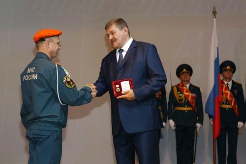 Руководитель ФГКУ «Специальное управление федеральной противопожарной службы № 70 МЧС России» Андрей Заровский поздравил коллег с праздником и вручил им ведомственные награды.