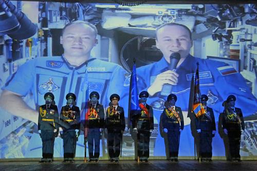 С юбилейной датой сотрудников МЧС также поздравили представители КЦ «Южный», филиала «Байконур» РКК «Энергия» им. С.П.Королева и городских силовых структур. Было показано видеопоздравление от экипажа Международной космической станции в составе бортинженеров Александра Мисуркина и Сергея Рязанского, которые сейчас находятся на борту МКС.