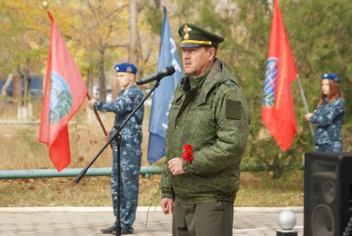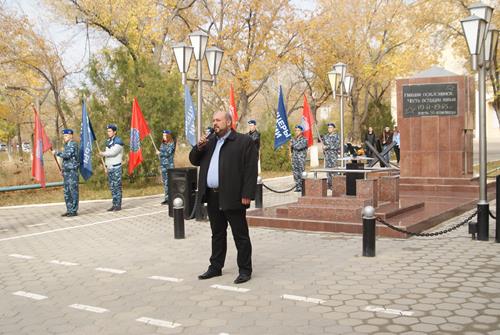 На митинге выступили начальник УМВД России на комплексе «Байконур» Андрей Желудков, военный комиссар города Байконур Николай Придворов, региональный представитель всероссийской общественной организации «Офицеры России» Петр Майданов, начальник Управления культуры, молодёжной политики, туризма и спорта Евгений Гертер, член Российского союза писателей Игорь Гарбуз. Все выступавшие вспоминали подвиги солдат, отдавших свои жизни за спокойствие и развитие своей страны.