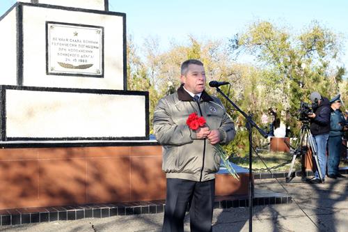 Далее к присутствующим на митинге обратились Глава администрации города Байконур Константин Бусыгин, директор филиала Госкорпорации по космической деятельности «Роскосмос» Валерий Хачатурян, директор филиала ФГУП ЦЭНКИ - Космический центр «Южный» Евгений Раковский, ветеран космодрома Байконур Виктор Кулепетов. Все выступавшие вспоминали подвиг испытателей космической техники, которые отдали свои жизни на благо Родины, во имя развития космической державы. В завершение митинга к обелискам и на могилы погибших ракетчиков были возложены цветы.