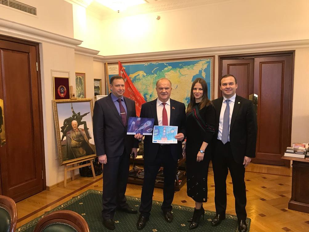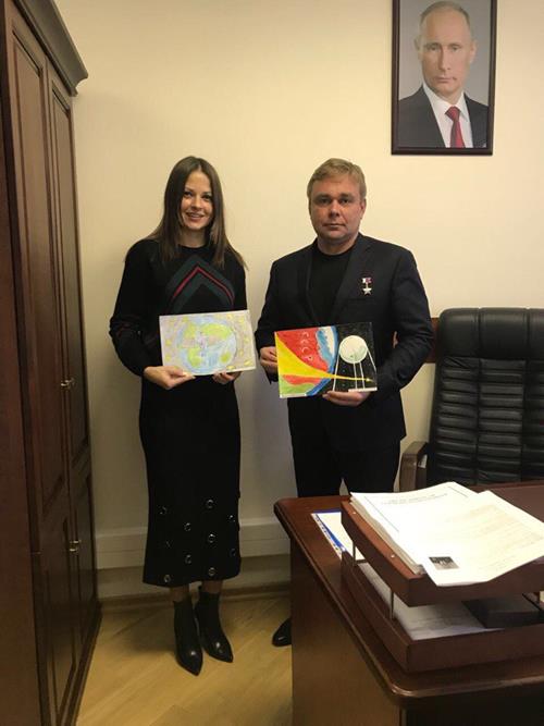 Часть рисунков байконурских школьников, принявших участие в акции «Запуск первого искусственного спутника Земли глазами детей Байконура!», переданы депутатам Государственной думы Российской Федерации. Рисунки были вручены руководителю фракции Компартии в Государственной Думе Геннадию Зюганову, депутатам Госдумы Максиму Сураеву, Денису Кравченко, Оксане Пушкиной, Алексею Русских. Оксана Пушкина на своей странице в Instagram отметила: «Рисунки - спутники школьников Байконура прилетели в Москву. Спасибо, ребятишки!».