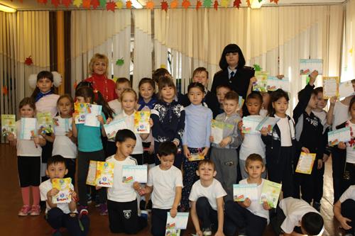 В ходе мероприятия инспектор по пропаганде БДД рассказала детям об истории возникновения Всемирного дня ребенка, а также напомнила первоклассникам о Правилах дорожного движения и поведении на дорогах в зимний период. Ребята из отряда ЮИД загадывали первоклассникам загадки, посвященные Правилам дорожного движения. Школьники с удовольствием приняли участие в занятии, активно задавали интересующие их вопросы и отвечали на вопросы и загадки инспекторов.